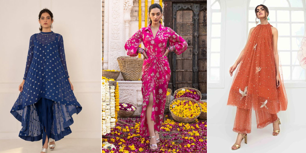 Experiment with asymmetrical hemlines, off-shoulder necklines, and cold-shoulder details to infuse a contemporary edge into your outfit. Don’t be afraid to mix bold patterns and contrasting colors to make a bold fashion statement. Explore the fusion of Indian textiles with Western cuts by wearing a denim or leather jacket over a kurta and palazzo set. This eclectic combination exudes an effortless coolness that will make heads turn at your Rakhi gathering.