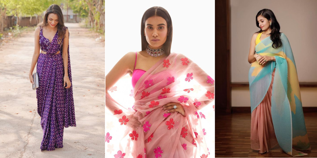 The pre-stitched sarees eliminate the need for intricate pleats and draping, saving you time and effort without compromising on the elegance. You can effortlessly slip into a saree gown or a concept saree, and you’re ready to dazzle at your Rakhi celebrations. Contemporary sarees also allow for more experimentation with different blouse styles. You can choose from crop tops, halter necks, or even a stylishly draped pallu that adds a touch of glamour to your ensemble.