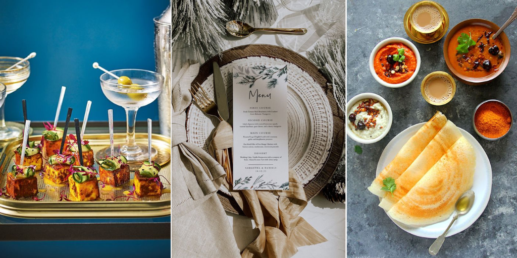 Credits: deliciousmagazine.co.uk, etsy.com, happyandharried.com Incorporating the caterer’s specialties is a must-have for any Indian wedding menu, regardless of the season. The caterer’s expertise and signature dishes can be a great way to add a personalized touch to the menu. It’s important to discuss with the caterer beforehand and ensure that their specialties complement the other dishes on the menu. Including the caterer’s specialties can also showcase their talent and expertise and provide a memorable culinary experience for the guests. Therefore, not forgetting to include the caterer’s specialties is a crucial aspect of any summer wedding menu planning.